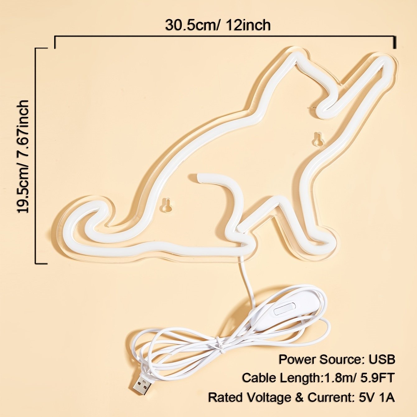 Home > 1pc LED Neon Sign Cat-shaped Night Lights, 5V USB Power Supply Neon Lamp With 2 Hooks For Home Bedroom Dorm Party