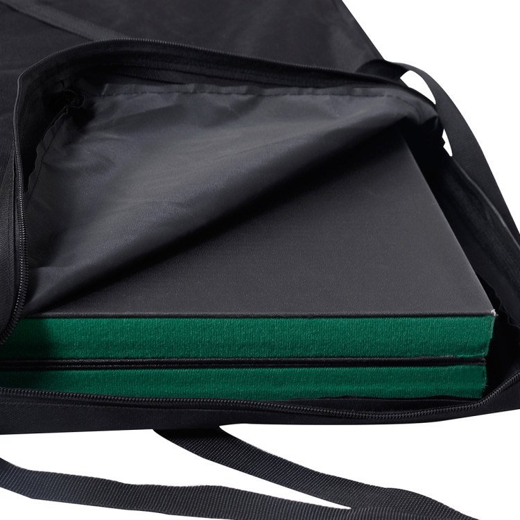 The poker table can be fourfolded for space saving and easy transport. Delivery also includes a black carrying bag with 2 straps for easy carrying.