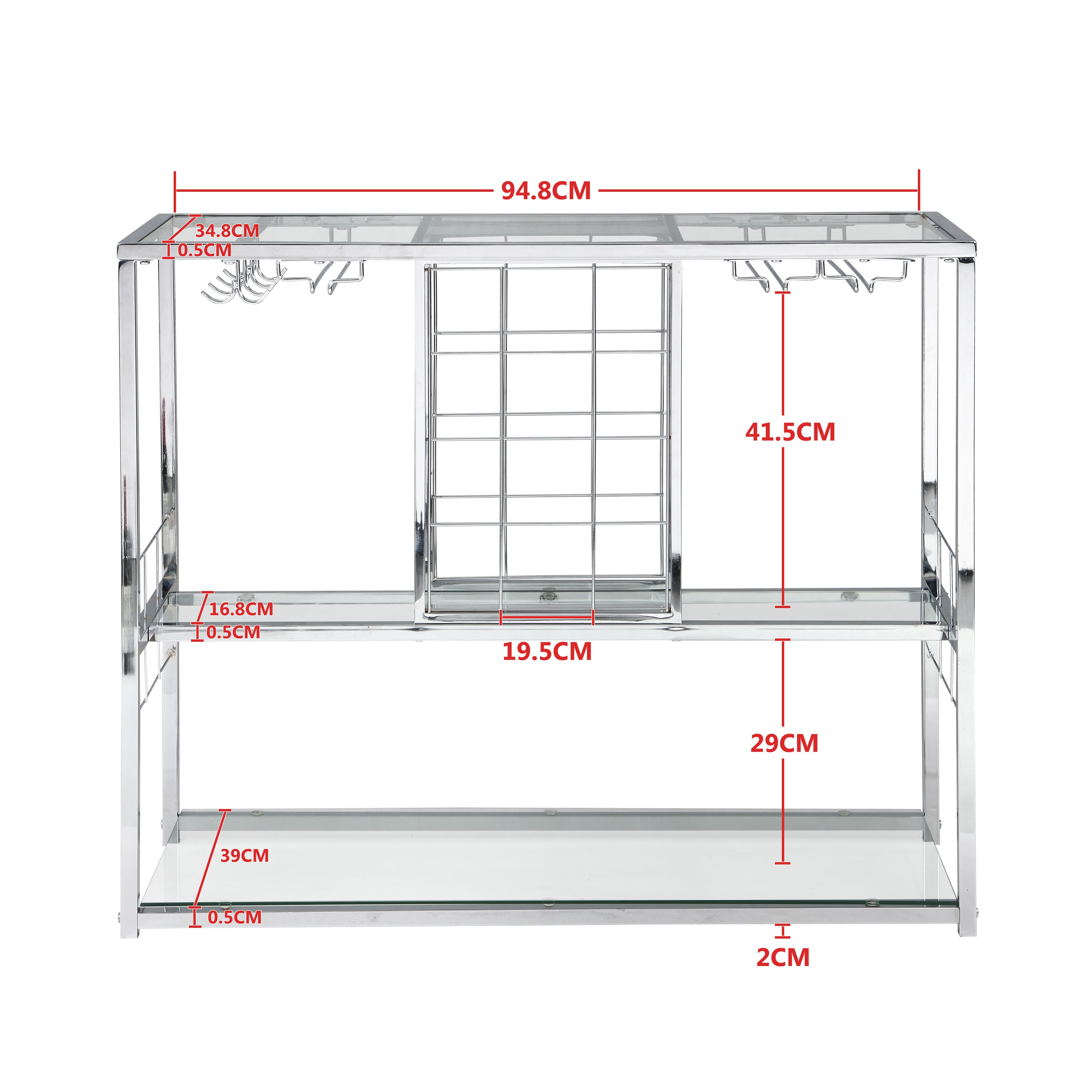 1. BIG STORAGE: 12 bottles,12 stemware racks and 8 cups can be holded. Other cups or trays can be put on the three glasses