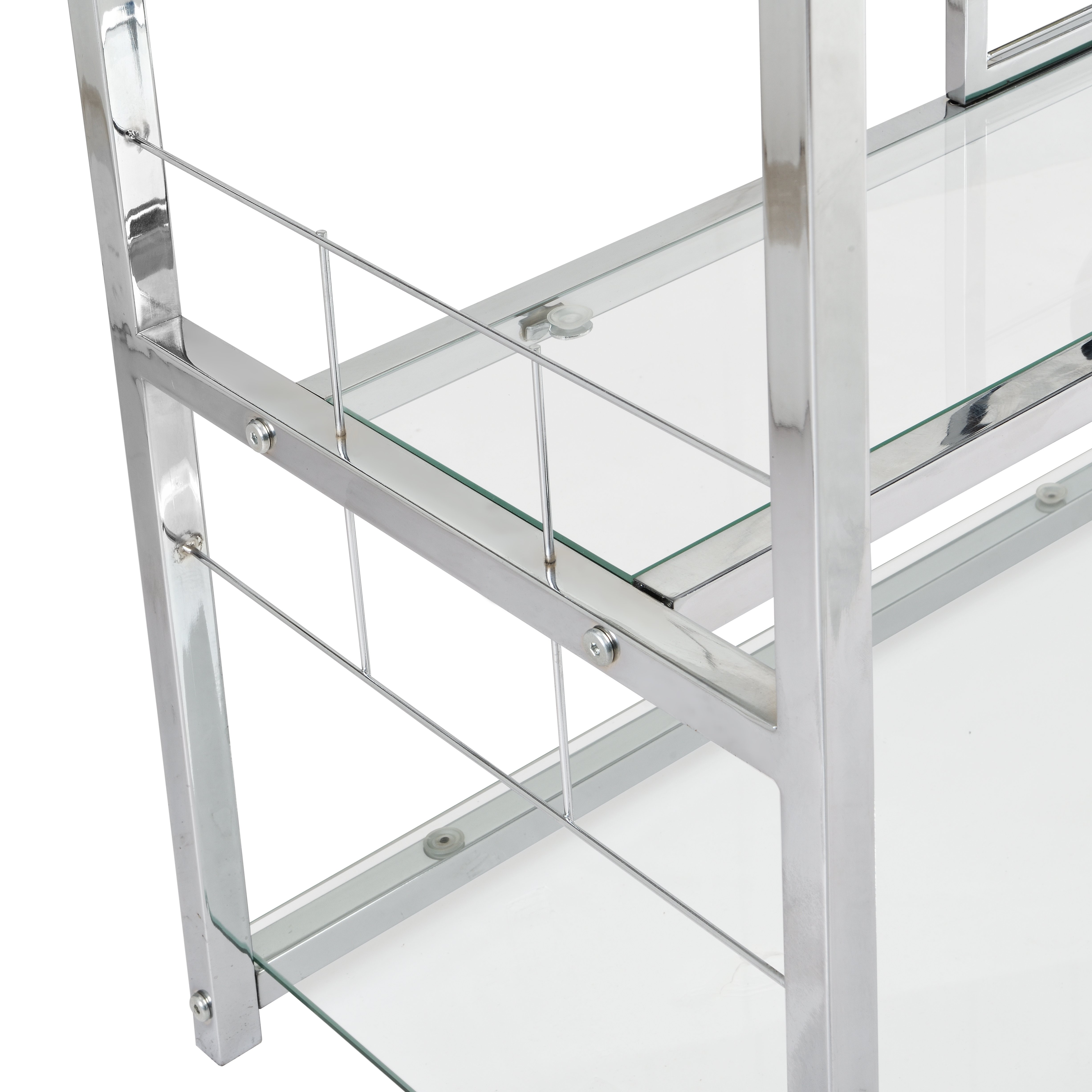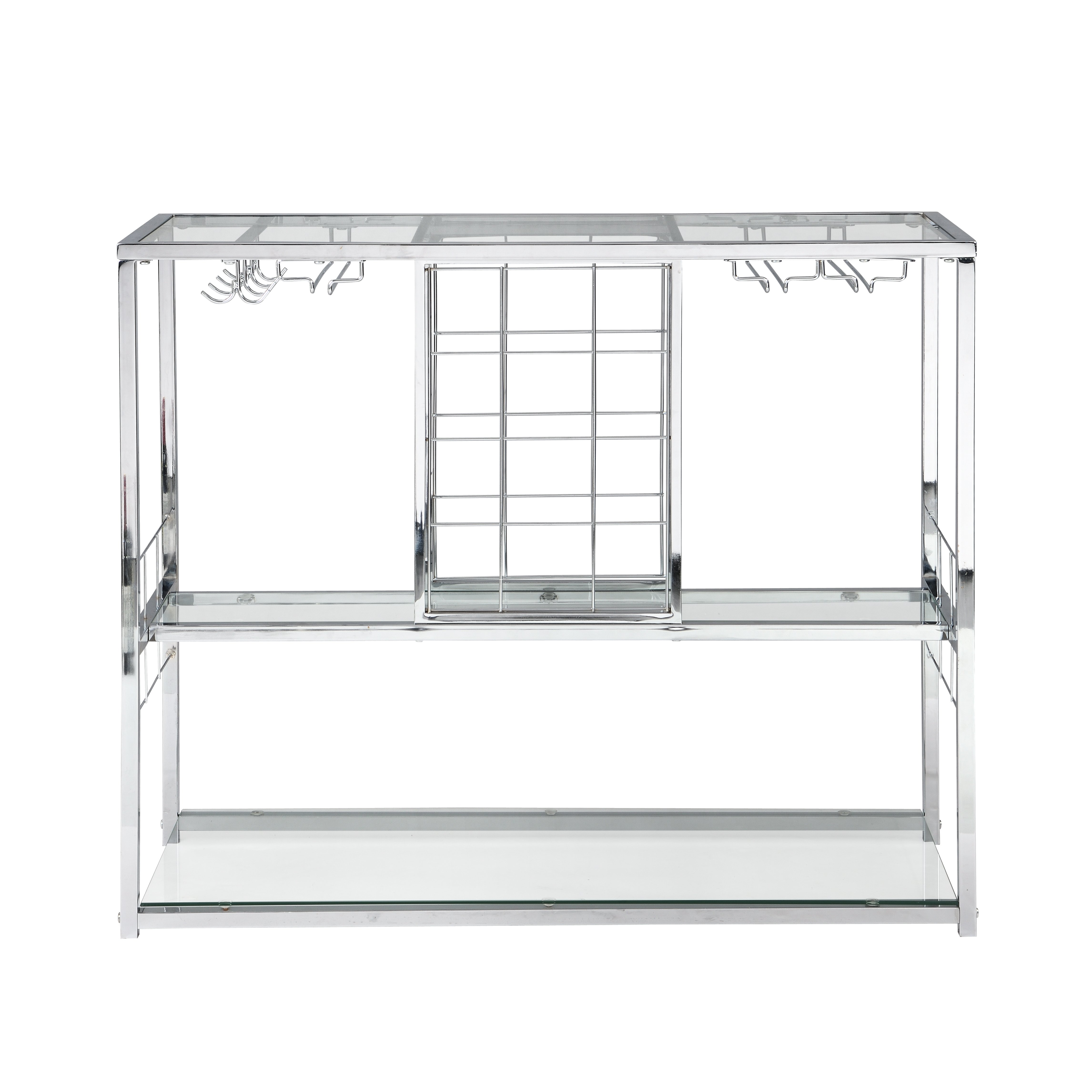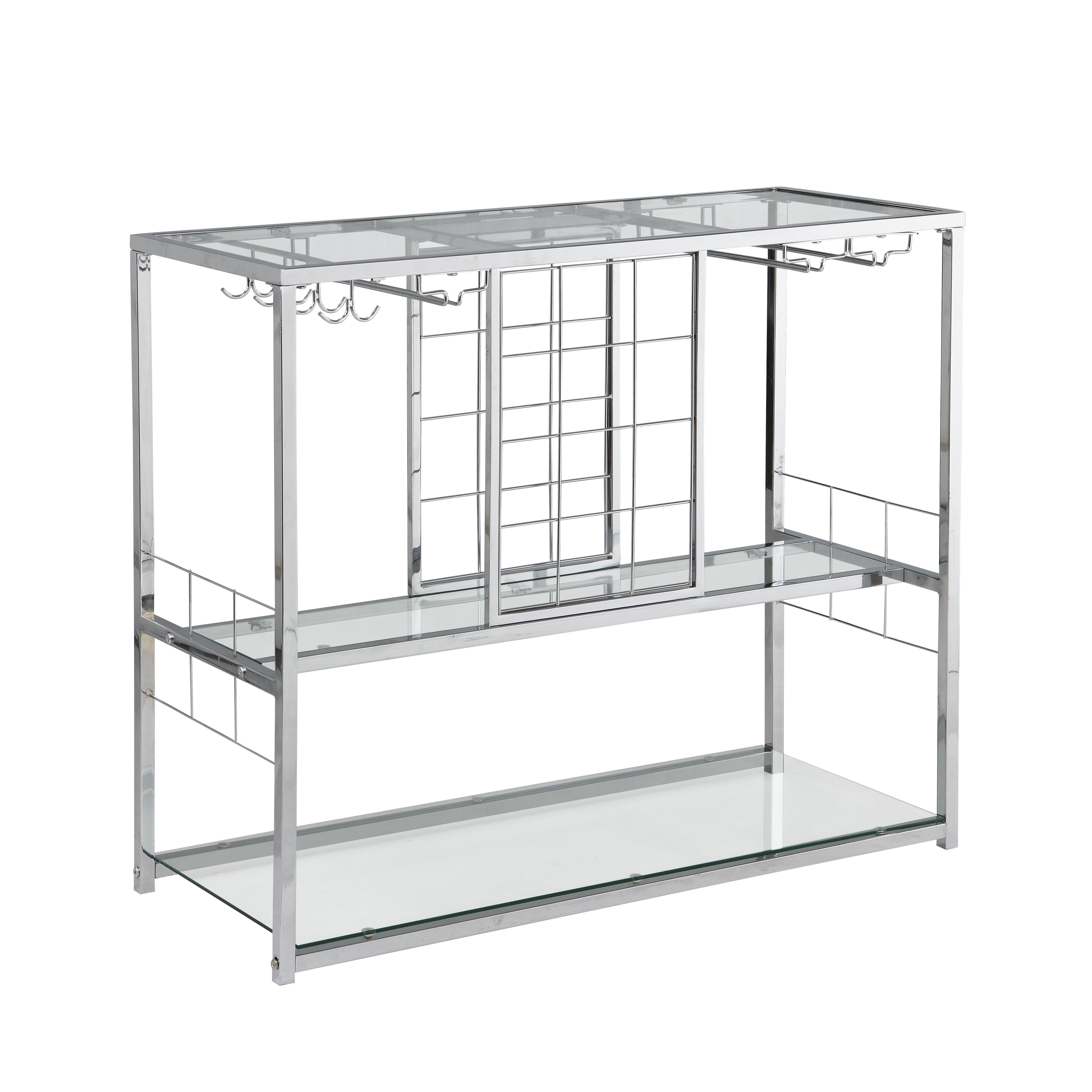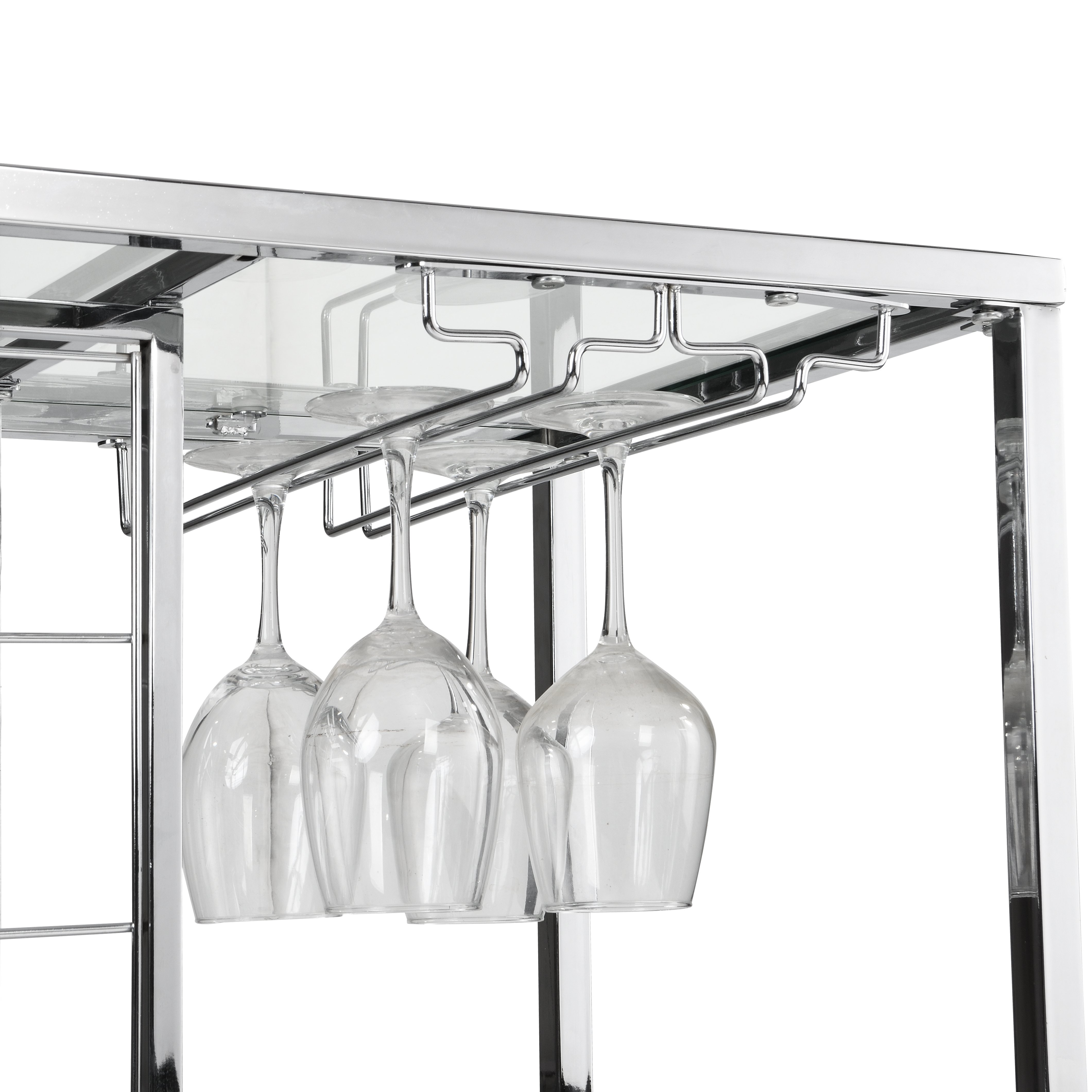 The tempered glass and steel bar cart is a modern cart, ideal for giving your interior a very contemporary feel. Its chrome-plated steel gives it a very up-to-the-minute look. This wine rack helps you save space and also allow your items to become a key part of your home decor!