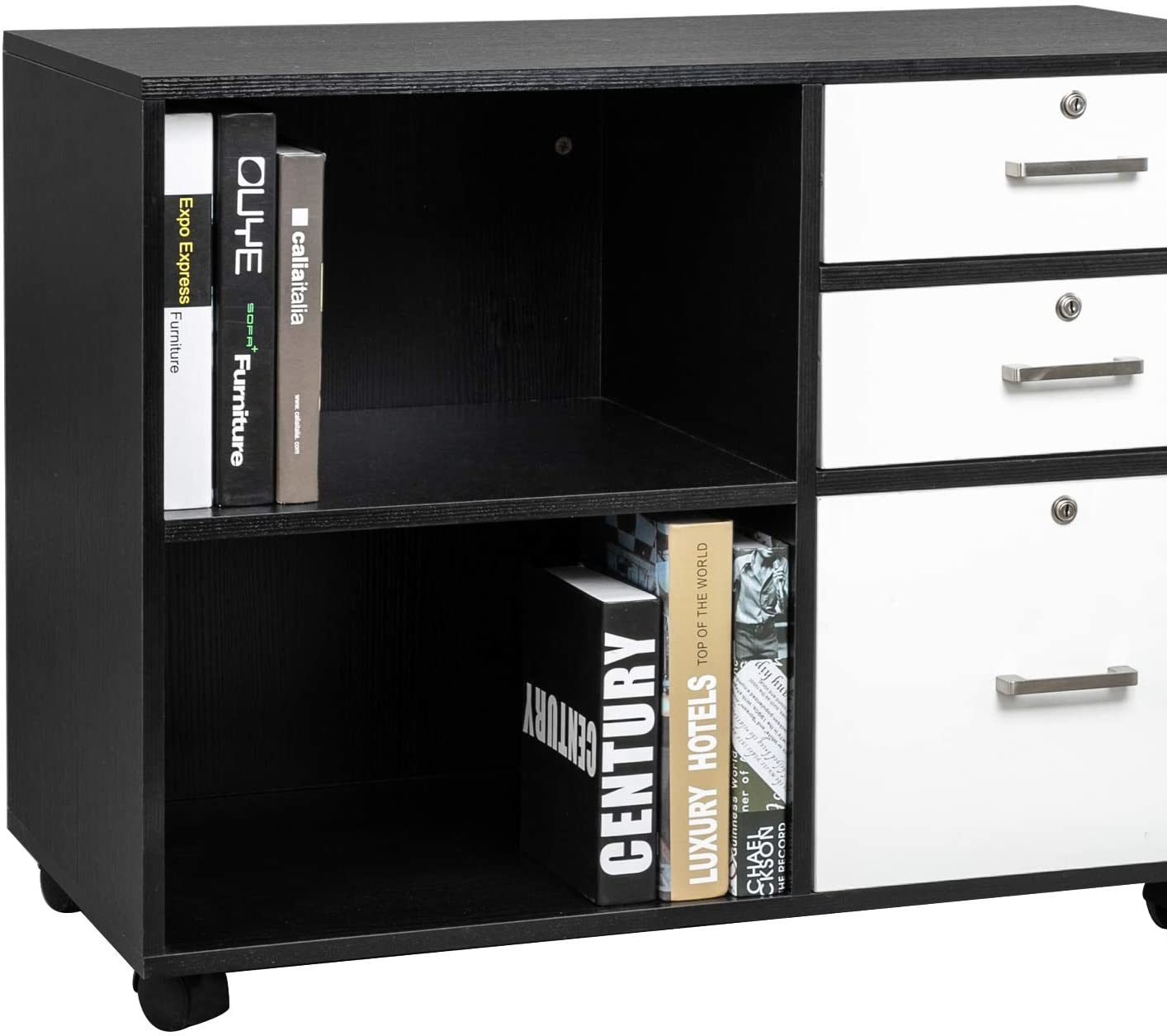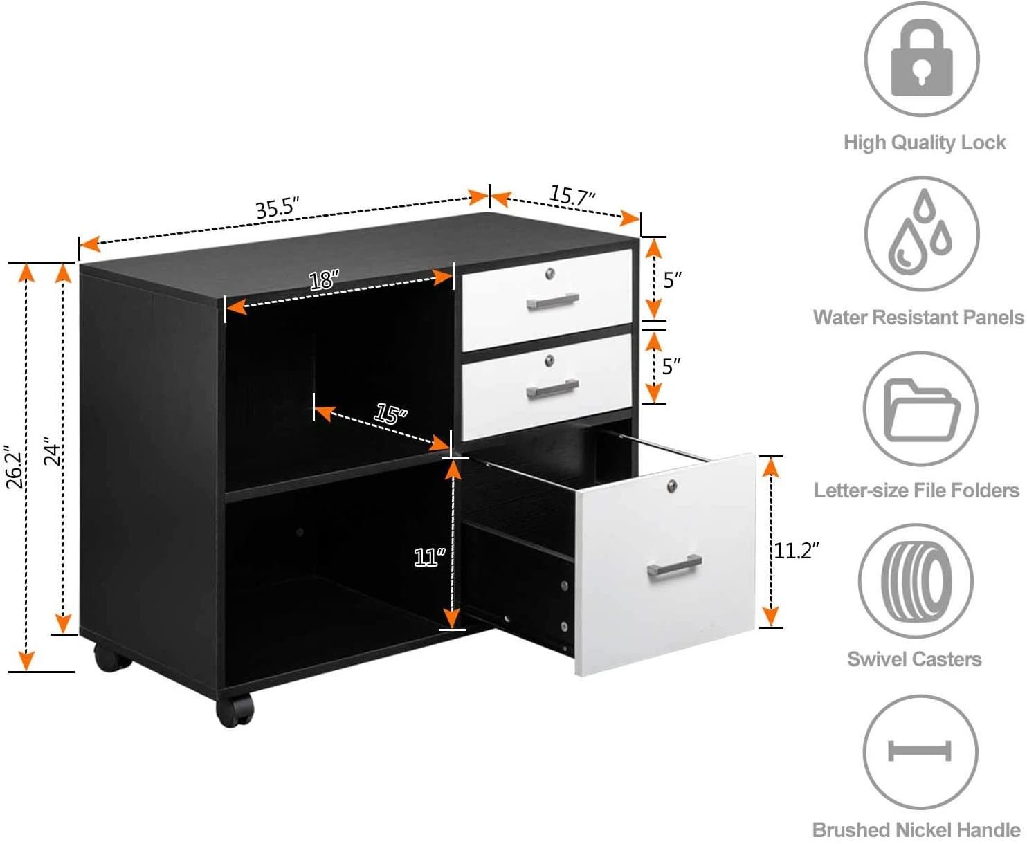 Home > Free shipping Wood File Cabinet with 3 Drawer and 2 Open Shelves Office Storage Cabinet with Wheel Printer Stand, 35.5"L x 15.7"W x 26"H YJ