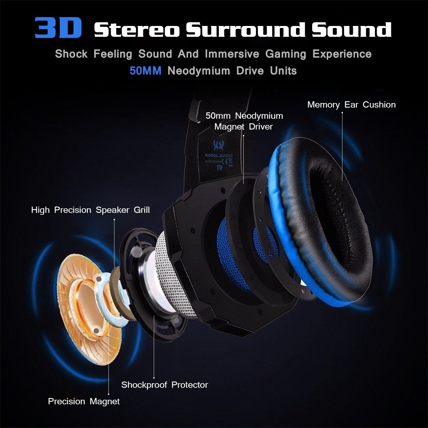 *Clear Stereo Sound*:Equipped with high precision 50mm neodymium magnetic speaker units; this gaming headset delivers crystal clear stereo sound complemented by the thick noise-isolating earcups. So that you can hear the clear thrilling gaming sound that pulls you right to the middle of ‘battlefield’ and the communication from your teammates cutting through the noises.