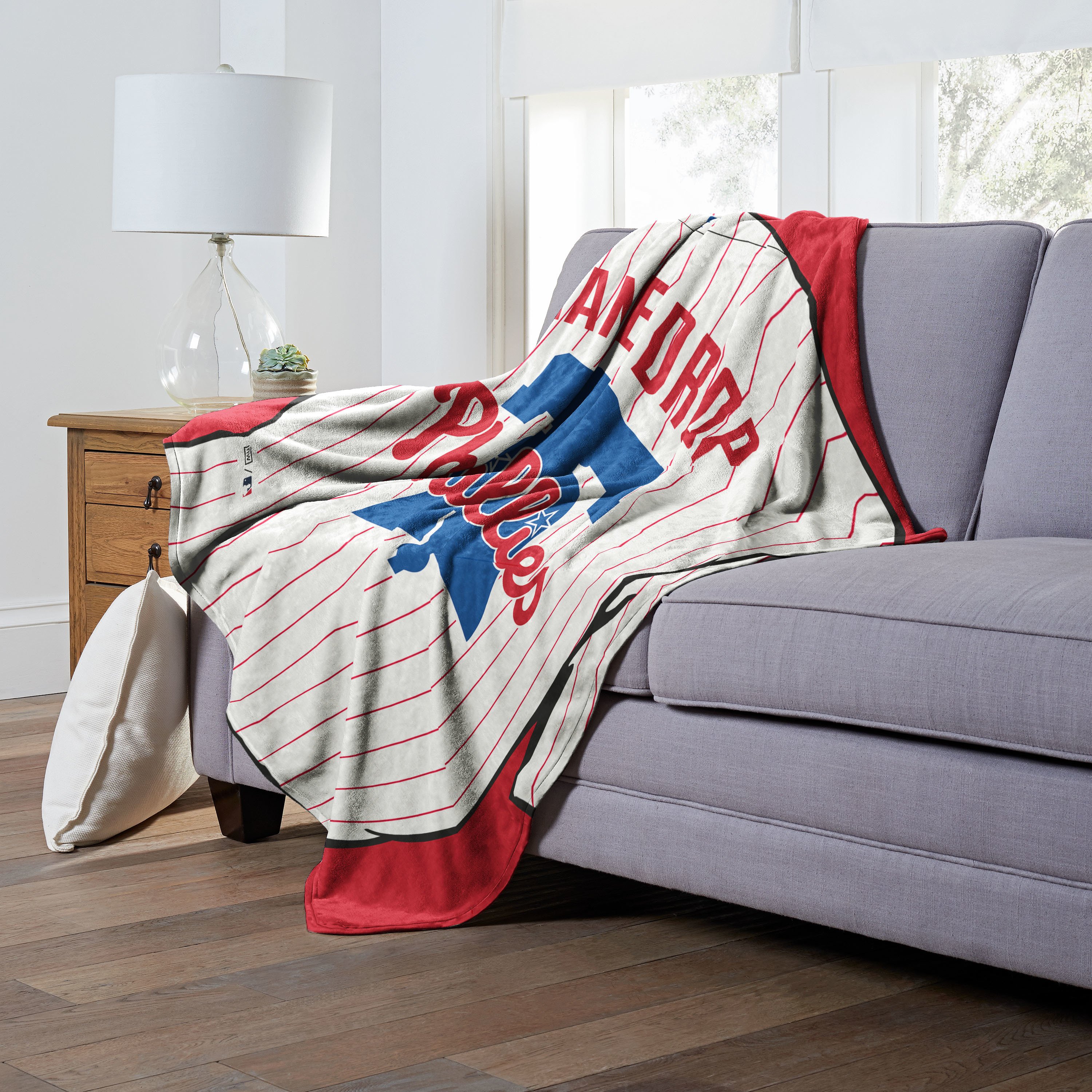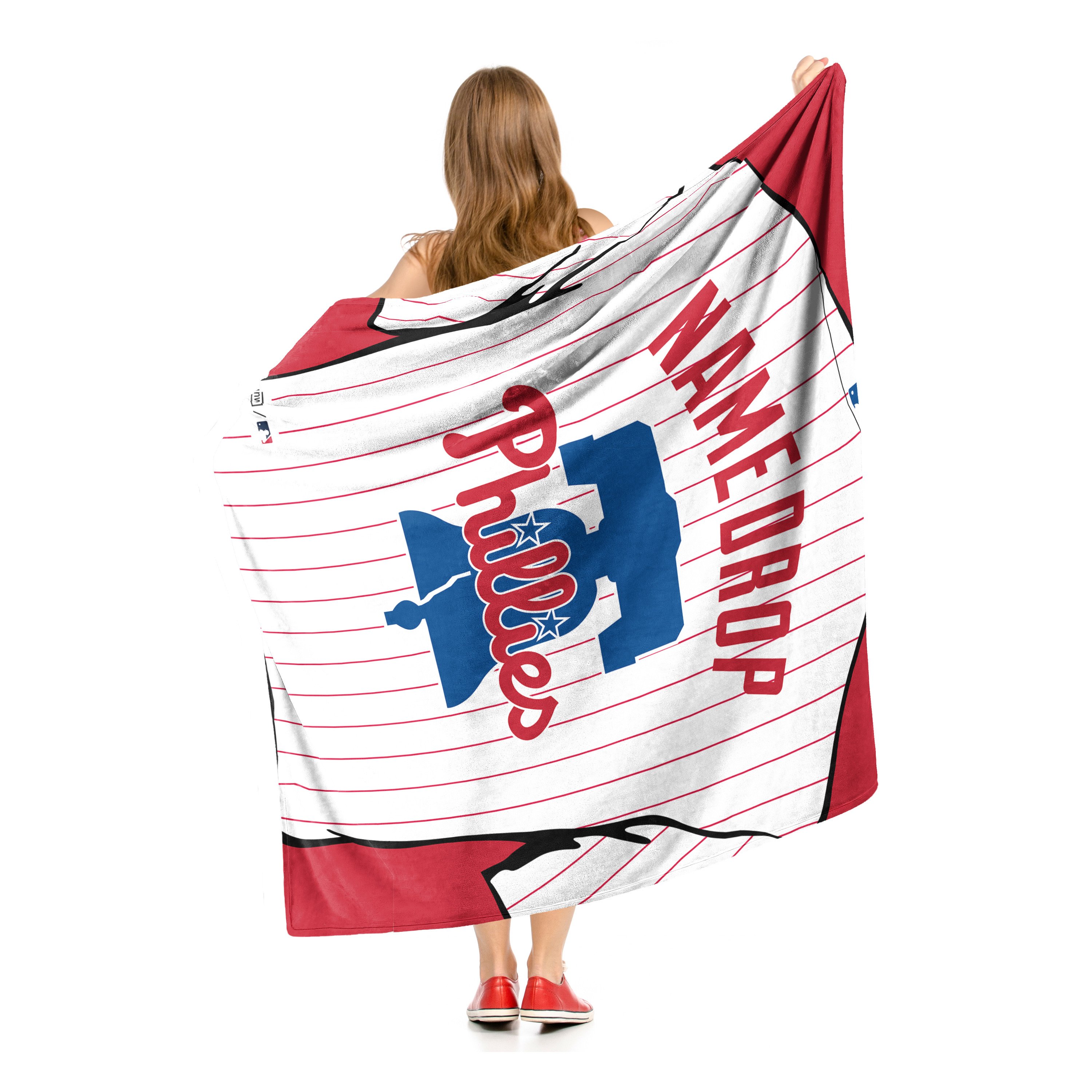 Proudly show off your favorite baseball team with this Officially Licensed MLB "Jersey" Personalized Silk Touch Throw Blanket by The Northwest. This 50"x 60" warm and cozy silk touch features your personalization above the team logo on a sports jersey design with a neutral color back. Give this personalized throw as an extra special gift or personalize one for yourself! It's the perfect game day accessory for your home. Features your personalization above the team logo on a sports jersey design. Silky-soft, warm and cozy throw; neutral color back