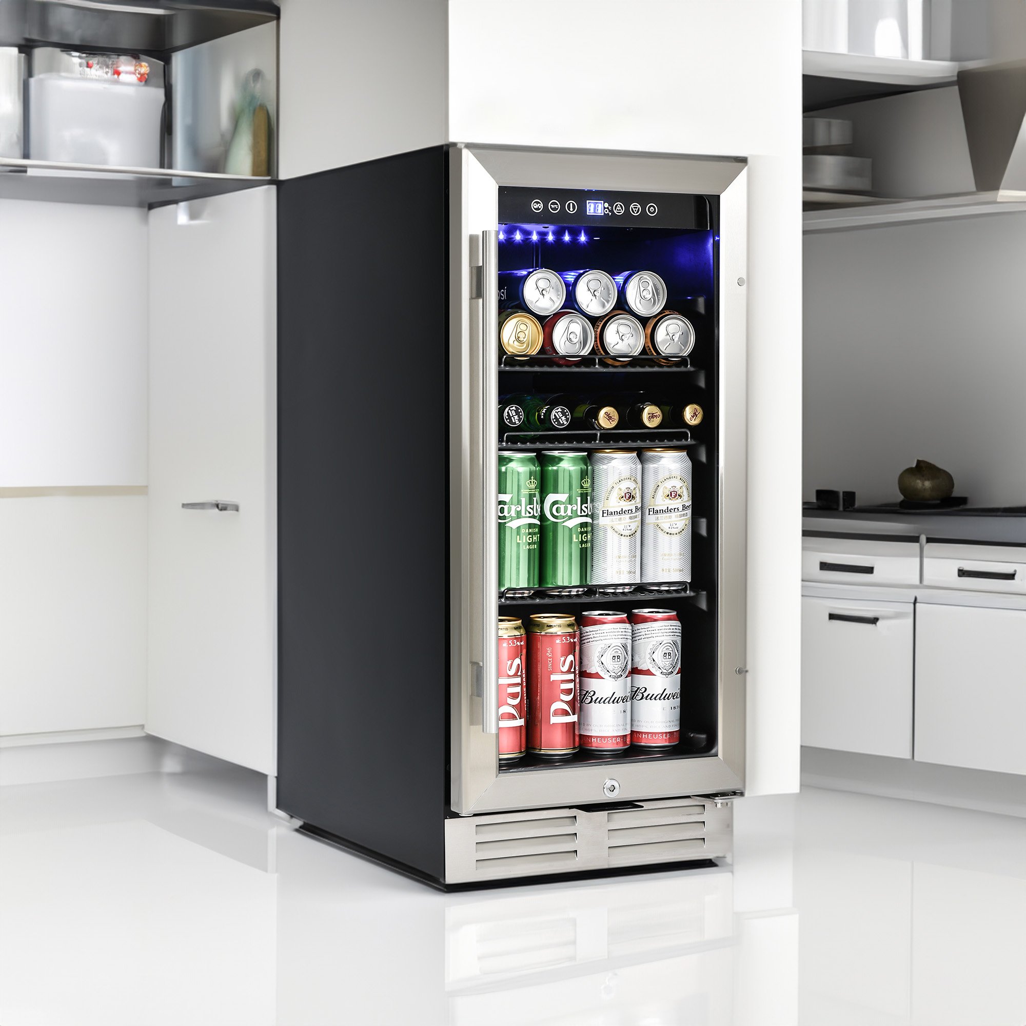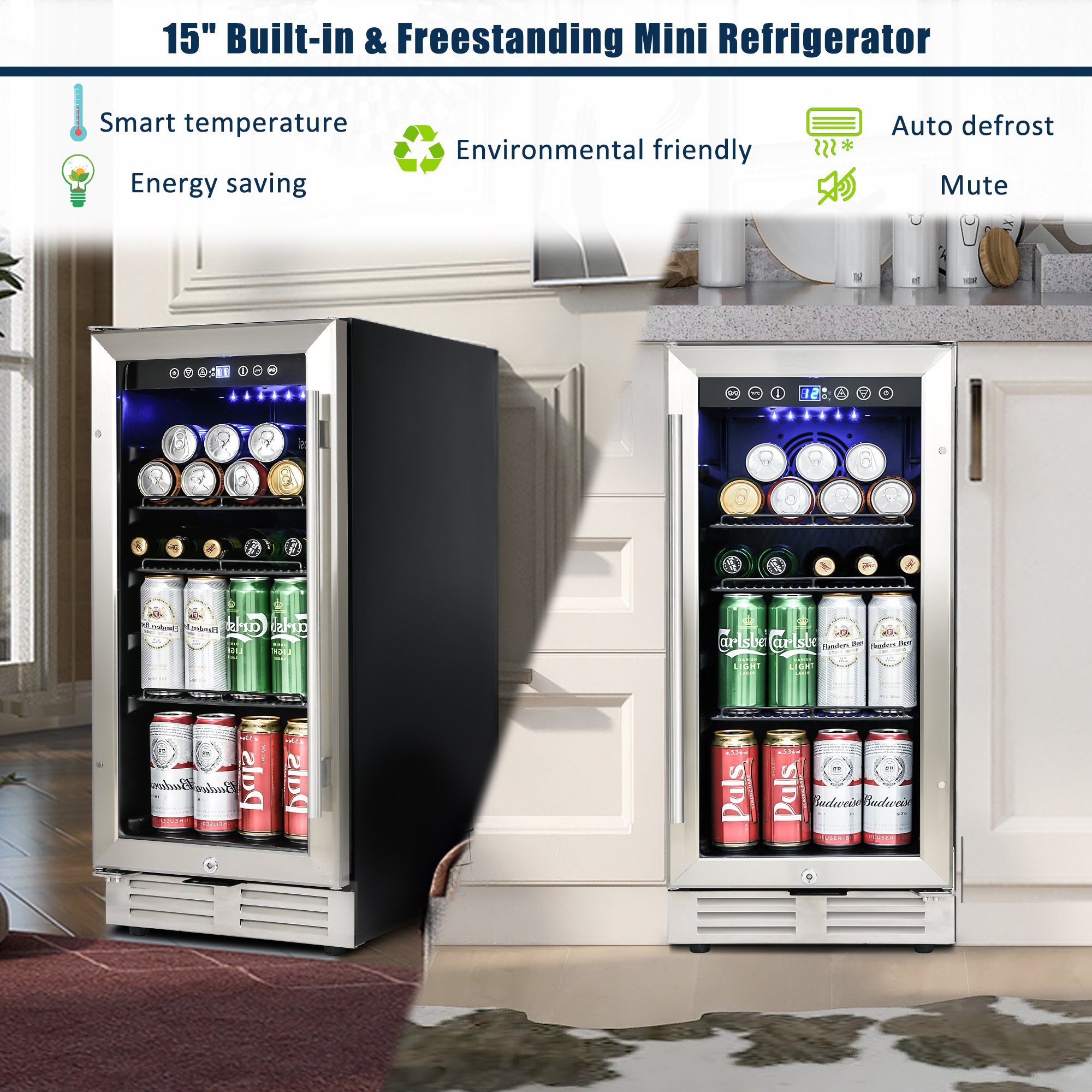 1. Versatile Built-in & Freestanding Design: Enjoy cold drinks anytime, anywhere, with this 15-inch mini refrigerator that doubles as a wine cooler. Whether in your living room, kitchen, bar, or office, it seamlessly blends with any furniture setup.
