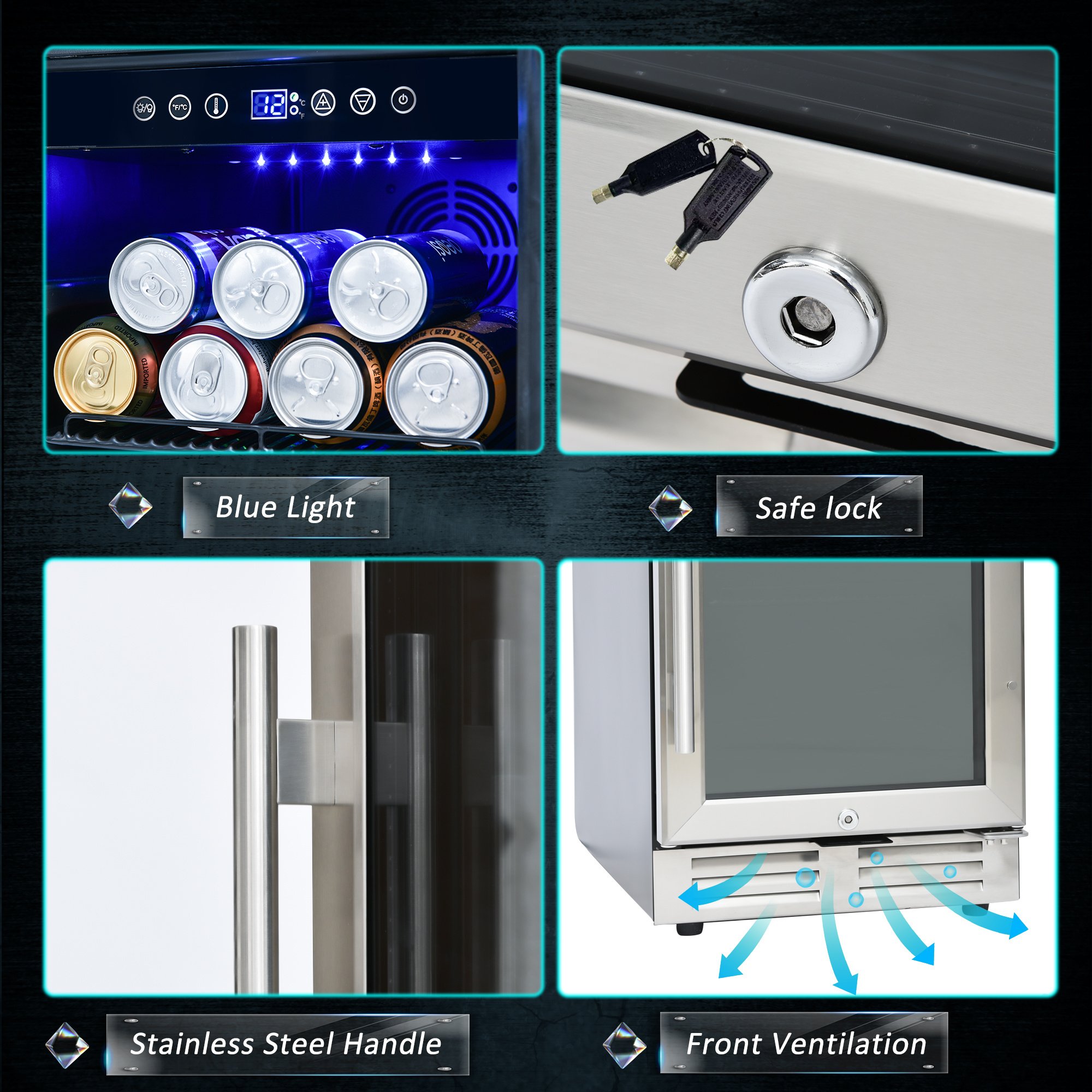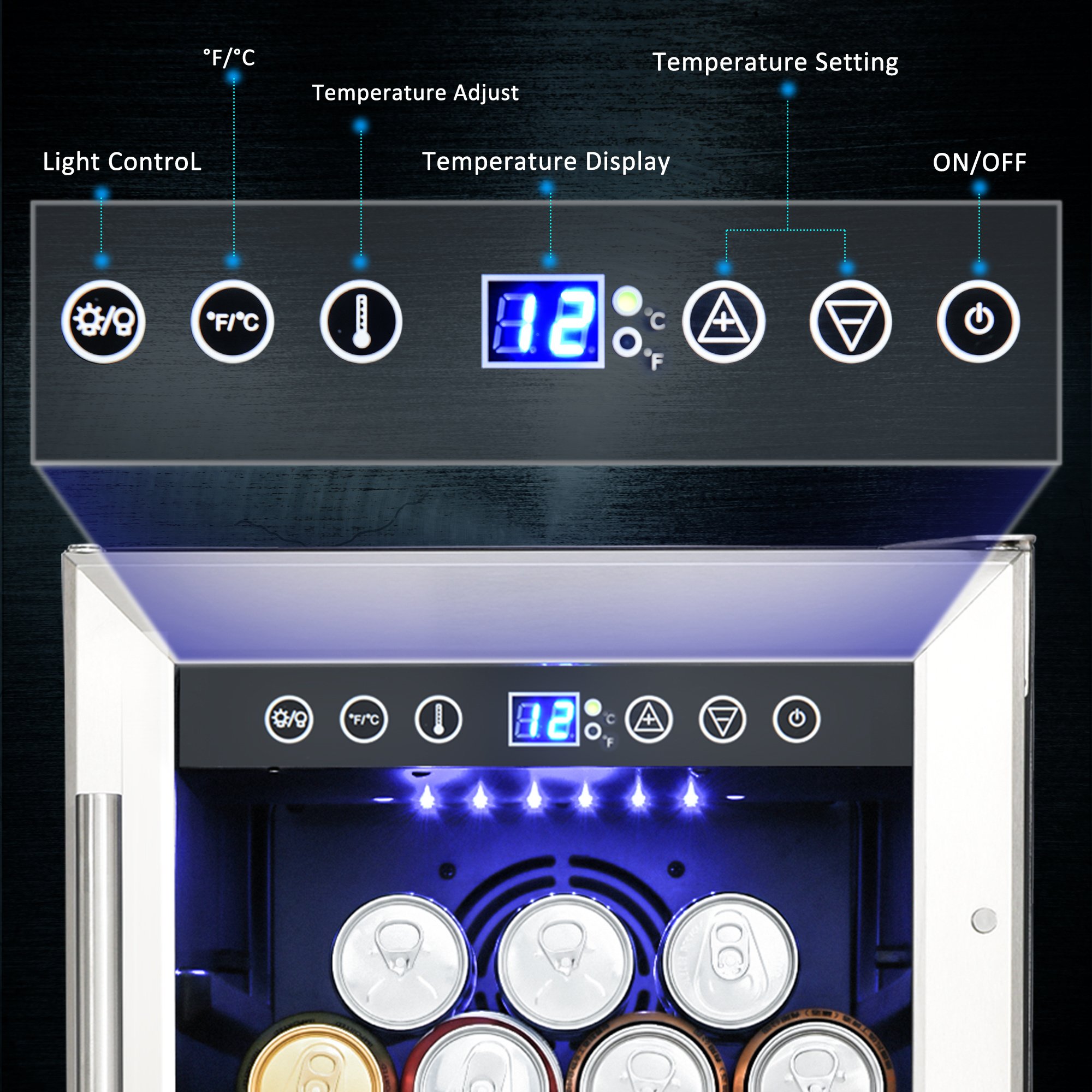 4. Elegant Display: Admire the stylish appearance of this beverage refrigerator with its stainless steel framed double tempered glass door. Not only does it maintain the interior temperature, but it also prevents fogging, giving you a clear view of your drinks.