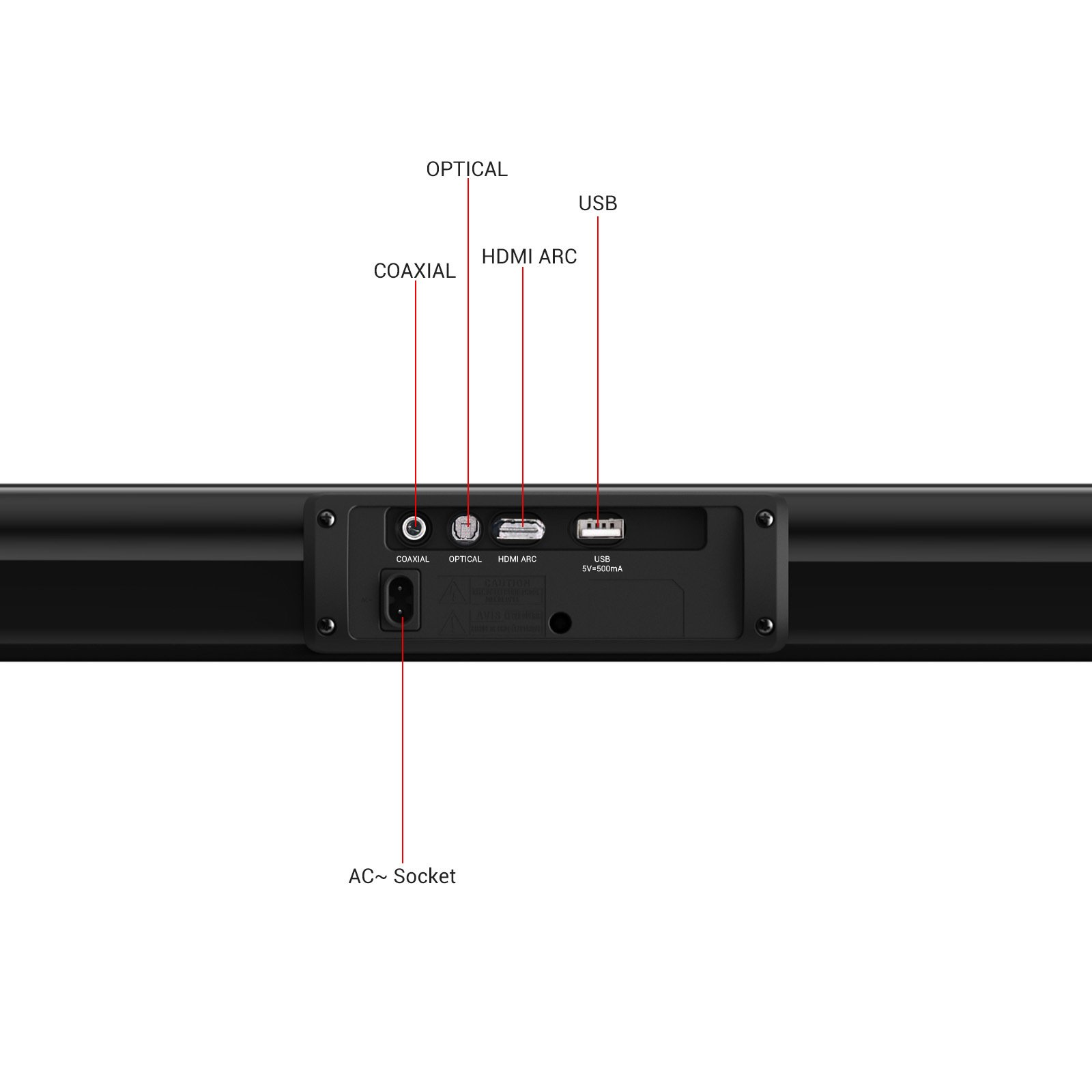 1.Waterproof IP65, Waterproof Designed, best for outdoor TV and wall mountable, 120 Watt peak power (60 Watt RMS output power) ensures amplified cinematic sound quality to any thin-profile HDTV, HDMI ARC &CEC, Bluetooth technology for wireless streaming via smartphone, PC or tablet devices, Full function remote control.